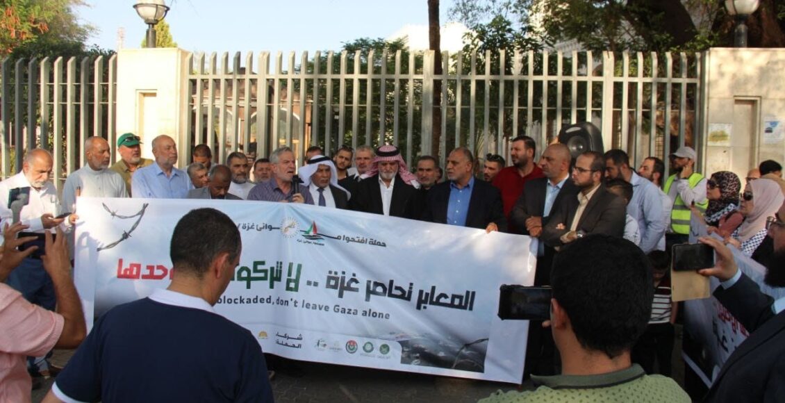 وقال رئيس حملة “افتحوا موانيء غزة” وائل السقا، في كلمة له خلال الوقفة، التي دعت لها الأحزاب الأردنية، إن “الحملة تأتي للمطالبة بفك الحصار عن غزة، وهي حملة دولية ممتدة في أكثر من 20 بلداً عربياً وأوروبياً في العالم لتسليط الضوء على معاناة الشعب الفلسطيني في القطاع المحاصر”.