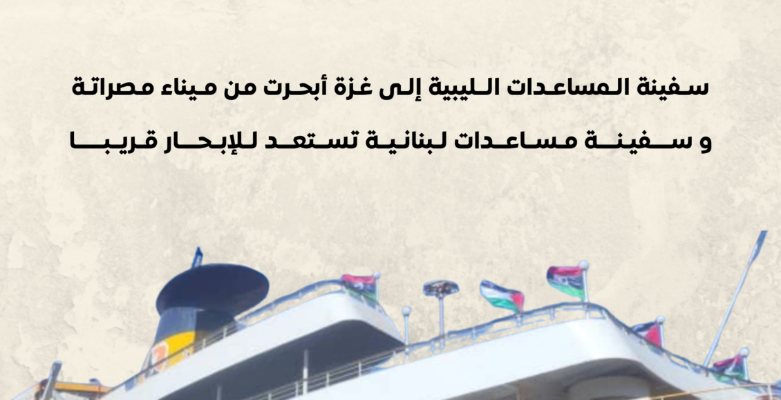تعلن الحملة الدولية لإنقاذ غزة عن انطلاق سفينة المساعدات الليبية للشعب الفلسطيني في غزة مساء اليوم الجمعة الموافق 29 مارس/آذار محملة بحوالي 1600 طن من المساعدات الإغاثية الأساسية وخاصة الأدوية والخيام والأغطية والملابس الشتوية والمواد الغذائية، التي ساهمت في جمعها منظمات المجتمع المدني في عدد من المدن الليبية خلال الشهور الثلاثة الماضية ضمن حملة شعبية أشرف على تنسيقها حملة الإغاثة الإنسانية الليبية لدعم غزة.